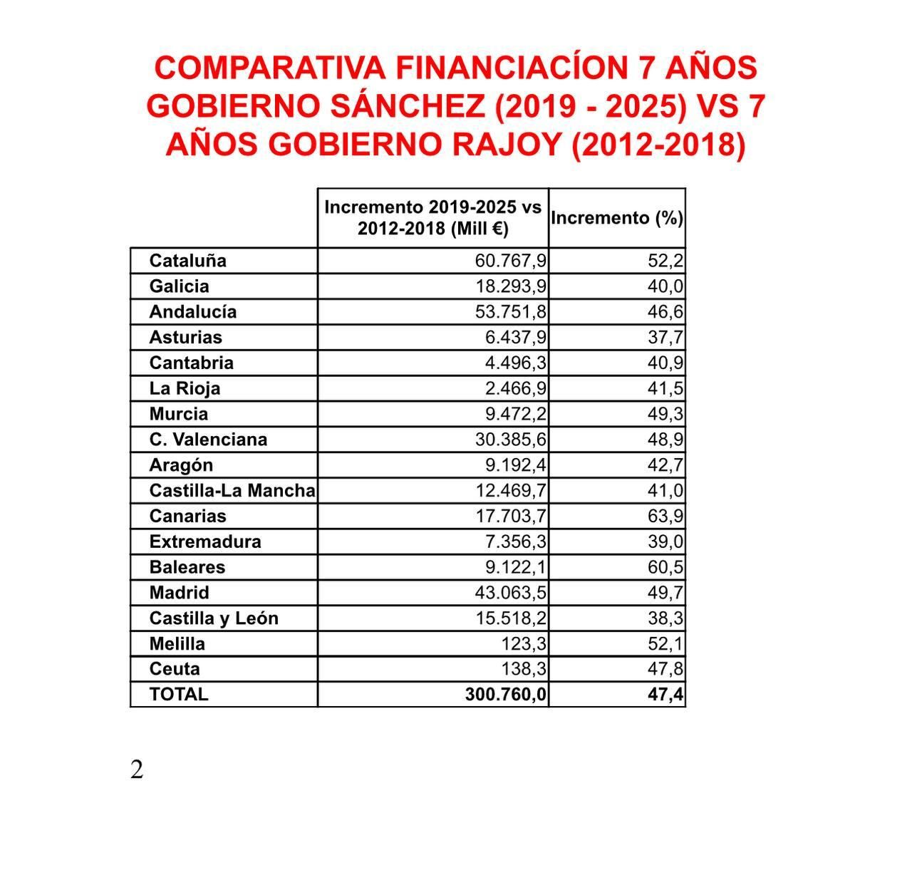 Andalucía. El gobierno de Juan Manuel Moreno Bonilla recibió más de 53.751,8 millones más de financiación extra desde 2019 (+46,6%). Y en 2026 recibirá 29.253 millones, las mayores entregas a cuenta de la historia y, sin embargo, uno de cada cuatro euros de su presupuesto ha sido destinado a otros fines distintos a los de sanidad o educación. Andalucía es, además, la comunidad con mayor tiempo de espera para recibir ayuda de dependencia. Sus listas de espera quirúrgica superan los 170 días de demora media.